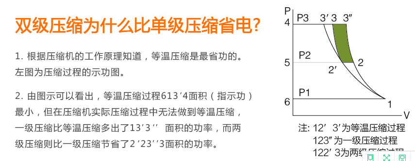 兩級(jí)壓縮工頻螺桿式空壓機(jī)省電原因